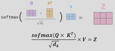 $$ \text{Attention(Q, K, V)} = \text{softmax}(\frac{QK^T}{\sqrt{d_k}}) \times V $$Cette formule intègre 3 composants importants qui sont associés à chaque token (mot) de la séquence d’entrée :