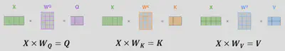 - Notons $X$ notre matrice en entrée qui correspond à la matrice de la séquence d’entrée encodée. Pour chaque tête en parallèle :